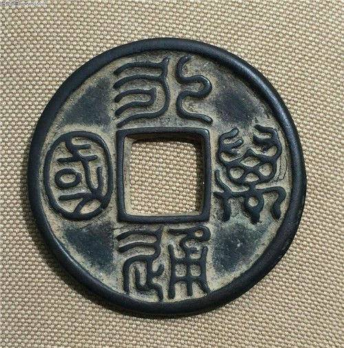 三国时期既沿用汉代的“五铢”,也自己造钱。刘备所建蜀国铸钱种类较多,有不少虚值“大钱”,如直百五铢、太平百钱、直百,面值大,但有的钱体还不如一枚五铢钱;吴国比蜀国更狠,钱币面值更“虚”,先后刊行了大泉五百、当千、二千、五千。一枚“大泉当千”,巨细、形制类似王莽的大泉五十,面值却增添了二十倍!老黎民都出离恼怒了,也遭受不住压力,就收回和销毁大泉二千、五千这两种钱,以是这两种古币存世很少,尤其是大泉五千,留存至今的也就五枚左右,是中国古钱的大珍品。